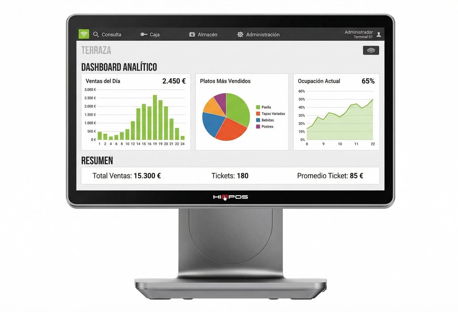 Adecuado para Fast food, restaurantes, comercios especializados, gimnasios y centros deportivos, hoteles, ticketing, garden centers, heladerías, pago de documentos, etc.