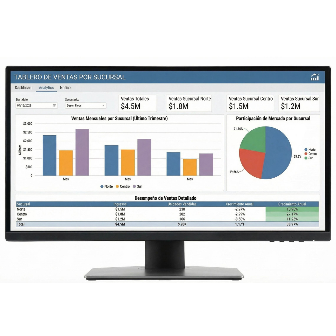 Solución de Business Intelligence para visualizar y analizar datos de ventas y operaciones.