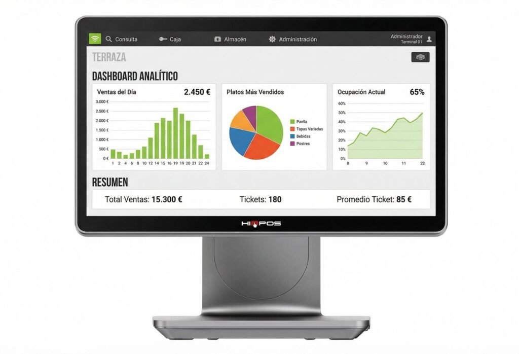 Dashboard con KPIs clave: ventas, tickets, márgenes, productos top